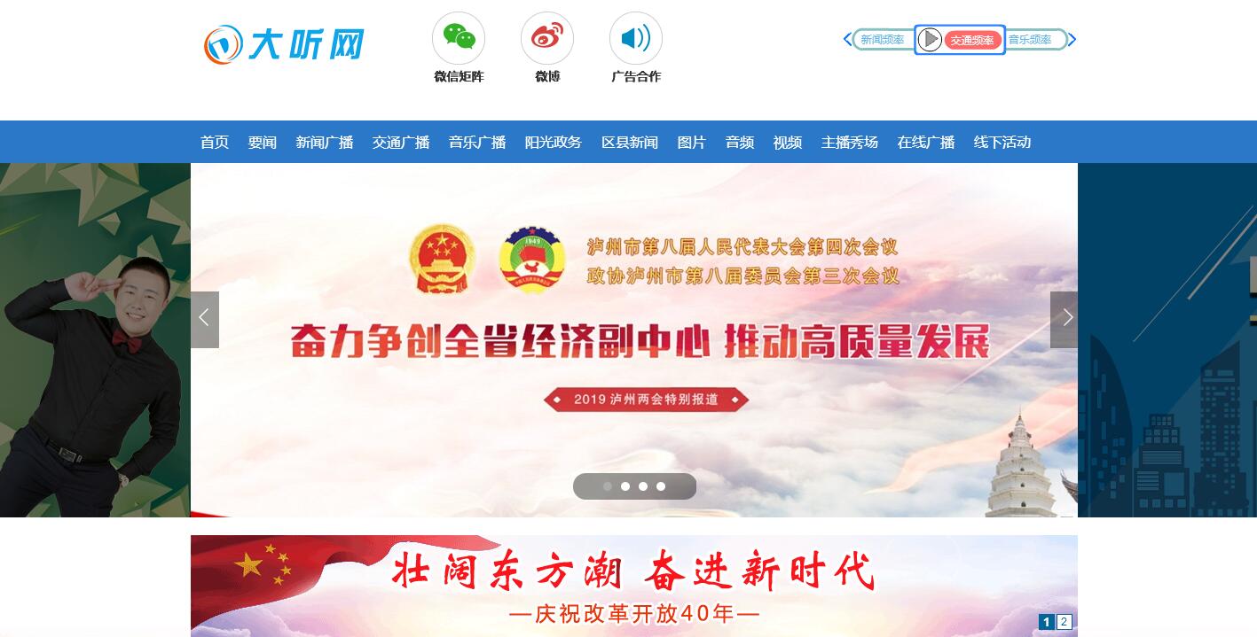 | 網(wǎng)站簡(jiǎn)介: 瀘州人民廣播電臺(tái)位于中國(guó)酒城瀘州,是川滇黔渝結(jié)合部目前信號(hào)覆蓋最廣、全省地級(jí)城市中信號(hào)覆蓋率最完善的城市電臺(tái),所屬三個(gè)頻率覆蓋瀘州四縣三區(qū),城市人口覆蓋率100%。周邊云貴川渝結(jié)合部市縣區(qū)域覆蓋面積達(dá)90%以上。瀘州電臺(tái)目前擁有新聞?lì)l率、交通頻率、音樂(lè)頻率及頻率和重點(diǎn)欄目微信微博、大聽網(wǎng)(注:原瀘州廣播網(wǎng),下同)pc網(wǎng)站、聽瀘州、大聽網(wǎng)微信公眾號(hào)、大聽網(wǎng)客戶端、瀘州通客戶端等全媒體傳播平臺(tái),三套頻率節(jié)目均入駐蜻蜓FM和阿基米德兩個(gè)國(guó)內(nèi)領(lǐng)先的新媒平臺(tái),不但實(shí)現(xiàn)了在全球任何地方可同步收聽瀘州廣播,并實(shí)現(xiàn)受眾與主播互動(dòng),精準(zhǔn)獲取節(jié)目關(guān)注率。據(jù)中國(guó)最權(quán)威的廣播調(diào)查機(jī)構(gòu)“賽立信”數(shù)據(jù)顯示,2016年瀘州電臺(tái)旗下三個(gè)頻率節(jié)目平均收聽率和市場(chǎng)占有率穩(wěn)居瀘州地區(qū)第一。近年來(lái),瀘州電臺(tái)緊緊圍繞辦看得見的廣播的理念,通過(guò)頻率、網(wǎng)站、“兩微多端”等全媒體平臺(tái)的互聯(lián)互通,能夠同時(shí)生產(chǎn)音頻、視頻、文字、圖片等多樣態(tài)產(chǎn)品,實(shí)現(xiàn)多介質(zhì)運(yùn)作的、具有市場(chǎng)競(jìng)爭(zhēng)力的全媒體立體傳播平臺(tái)已初具規(guī)模,節(jié)目生產(chǎn)、創(chuàng)優(yōu)、媒體經(jīng)營(yíng)等工作走在了全省前列,其綜合實(shí)力在川滇黔渝結(jié)合部城市電臺(tái)中排名第一。大聽網(wǎng)是由瀘州市人民廣播電臺(tái)開辦、經(jīng)國(guó)家網(wǎng)信辦和國(guó)家廣電總局批準(zhǔn)的第三類資質(zhì)視聽新聞網(wǎng)站,是瀘州市委宣傳部確定的瀘州市三大主流網(wǎng)站之一。按照國(guó)家《互聯(lián)網(wǎng)新聞信息服務(wù)管理規(guī)定》要求,大聽網(wǎng)目前發(fā)布內(nèi)容包括:上級(jí)宣傳主管部門要求的主題宣傳、電臺(tái)新聞、交通、音樂(lè)三大頻率熱點(diǎn)資訊,在線直播以及熱點(diǎn)重點(diǎn)廣播節(jié)目的音視頻碎片化時(shí)移化播出、自制廣播視頻節(jié)目和頻率線下活動(dòng)的音視頻直播,臺(tái)網(wǎng)聯(lián)動(dòng)。目前,大聽網(wǎng)pc端、wap網(wǎng)站、app已實(shí)現(xiàn)三端融合,三端均可順暢實(shí)現(xiàn)音視頻直播和點(diǎn)播,以大聽網(wǎng)為基礎(chǔ)的瀘州電臺(tái)“同一采編平臺(tái),統(tǒng)一平臺(tái)分發(fā),一鍵多發(fā)”的中央廚房格局初步成型。依托大聽網(wǎng),瀘州電臺(tái)的所有內(nèi)容均實(shí)現(xiàn)了多平臺(tái)的在線直播,碎片化、可視化、時(shí)移化播出和分發(fā)。 |