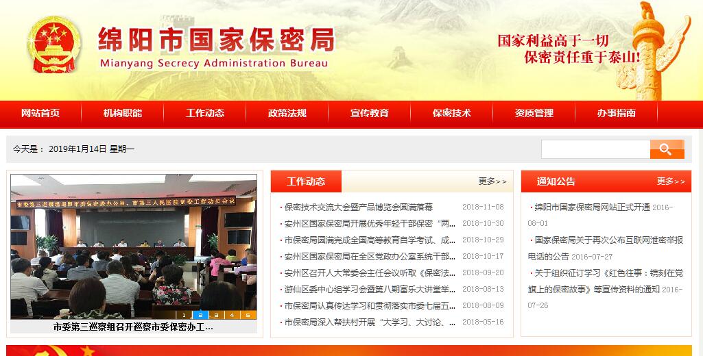 綿陽市國家保密局為正局級單位。設(shè)局長1名,副局長1名。內(nèi)設(shè)秘書科、技術(shù)科 (技術(shù)科增掛綿陽市國家保密局保密技術(shù)檢查中心牌子)。其主要職責(zé):(一)貫徹執(zhí)行黨和國家有關(guān)保密工作的方針、政策、法律、法規(guī)和市委、市政府關(guān)于保密工作的指示和決定。(二)制訂全市保密工作計劃并組織實(shí)施;研究、分析保密工作形勢及存在的問題,提出改進(jìn)和加強(qiáng)保密工作的意見和建議。(三)建立健全各項保密制度,依法履行保密行政管理職能。(四)監(jiān)督、檢查《保密法》及相關(guān)法規(guī)制度的實(shí)施;指導(dǎo)全市黨政機(jī)關(guān)和涉密單位保密工作。(五)組織指導(dǎo)開展保密宣傳教育、保密業(yè)務(wù)培訓(xùn)、政策調(diào)研。(六)組織實(shí)施對各目標(biāo)管理單位年度保密工作目標(biāo)考核,根據(jù)考核情況提出獎懲意見或建議。(七)協(xié)同有關(guān)部門做好全市重大經(jīng)濟(jì)、科技項目和重點(diǎn)工程、重要活動中的保密工作。(八)組織、指導(dǎo)、協(xié)調(diào)全市保密技術(shù)防范和保密技術(shù)檢查;負(fù)責(zé)審批所在地市、縣直機(jī)關(guān)及其所屬單位的涉密網(wǎng)絡(luò),對涉密網(wǎng)絡(luò)的安全保密管理進(jìn)行監(jiān)督檢查。(九)組織、指導(dǎo)、督促泄密事件的查處,直接參與查處重大泄密事件,協(xié)調(diào)有關(guān)部門采取補(bǔ)救措施。(十)指導(dǎo)、監(jiān)督、檢查全市國家秘密的確定、變更及解除工作,并實(shí)行動態(tài)管理。(十一)主管全市對外提供資料的保密工作;負(fù)責(zé)秘密級國家秘密載體出境審批。(十二)受理國家秘密載體印制乙級資質(zhì)申請,并抓好日常監(jiān)管。(十三)承辦市委、市政府和市委保密委員會交辦的其他工作。