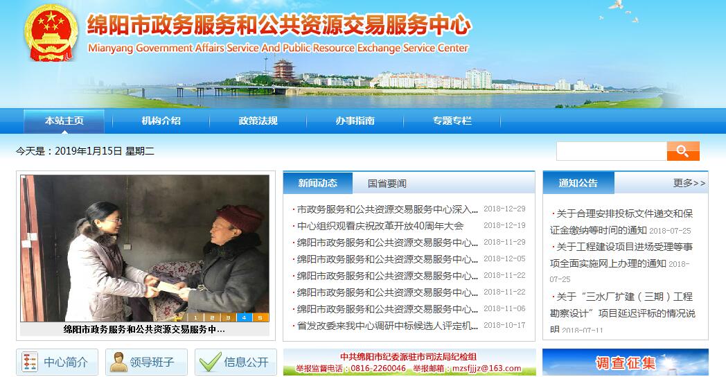 綿陽市政務(wù)服務(wù)和公共資源交易服務(wù)中心(以下簡稱“中心”)于2015年12月24日由市編委批準(zhǔn)成立,整合了原市政務(wù)服務(wù)平臺(tái)和原市公共資源交易服務(wù)中心,為綿陽市政務(wù)服務(wù)管理局管理的公益一類事業(yè)單位。中心內(nèi)設(shè)辦公室、政務(wù)平臺(tái)服務(wù)科、交易受理科、交易組織評(píng)審科、政府采購科、現(xiàn)場監(jiān)督科、技術(shù)信息科等7個(gè)科室。分設(shè)政務(wù)服務(wù)大廳和公共資源交易服務(wù)大廳。政務(wù)服務(wù)大廳位于綿陽涪城區(qū)臨園路東段72號(hào)新益大廈南樓7樓、10-12樓,面積約8600平方米。由行政審批區(qū)、并聯(lián)審批區(qū)、公共服務(wù)區(qū)、法律服務(wù)區(qū)、中介服務(wù)區(qū)、商務(wù)服務(wù)區(qū)組成,進(jìn)駐37個(gè)市級(jí)部門(其中:27個(gè)部門單設(shè)窗口,10個(gè)部門委托綜合窗口辦理),同時(shí)市政務(wù)服務(wù)管理局并聯(lián)審批科、綜合審批科進(jìn)駐大廳辦公,共有工作人員210余人。中心牢固樹立為民服務(wù)的意識(shí),加強(qiáng)對進(jìn)駐的市直部門(單位)及其工作人員的現(xiàn)場管理和后勤保障,堅(jiān)持目標(biāo)導(dǎo)向和問題導(dǎo)向,不斷創(chuàng)新工作思路和服務(wù)方式,促進(jìn)進(jìn)駐部門窗口為群眾提供優(yōu)質(zhì)、高效、便捷的服務(wù)。公共資源交易服務(wù)大廳位于綿陽市涪城區(qū)三江西路北段1號(hào)桃花島商業(yè)街4幢,面積約3000平方米。由公共服務(wù)區(qū)、開標(biāo)區(qū)、評(píng)標(biāo)區(qū)、監(jiān)控區(qū)和辦公區(qū)組成,現(xiàn)設(shè)立開標(biāo)廳6個(gè),評(píng)標(biāo)廳8個(gè)。公共資源交易服務(wù)平臺(tái)主要承擔(dān)工程建設(shè)項(xiàng)目招投標(biāo)、土地礦權(quán)出讓、政府采購、資產(chǎn)產(chǎn)權(quán)交易、經(jīng)營權(quán)出讓等5大類109項(xiàng)公共資源交易項(xiàng)目進(jìn)場交易的綜合服務(wù)和現(xiàn)場管理。中心堅(jiān)持用法治思維和法治方式推動(dòng)各項(xiàng)工作,深入推進(jìn)管理流程化、交易電子化、服務(wù)標(biāo)準(zhǔn)化建設(shè),著力打造“公正、規(guī)范、高效、廉潔”的公共資源交易服務(wù)平臺(tái)。厚德尚法,知止善為。綿陽市政務(wù)服務(wù)和公共資源交易服務(wù)中心在市委、市政府的堅(jiān)強(qiáng)領(lǐng)導(dǎo)下,堅(jiān)持依法辦事,規(guī)范服務(wù),不斷提升服務(wù)效能和群眾滿意度,全力服務(wù)于國家科技城和幸福美麗綿陽建設(shè)。