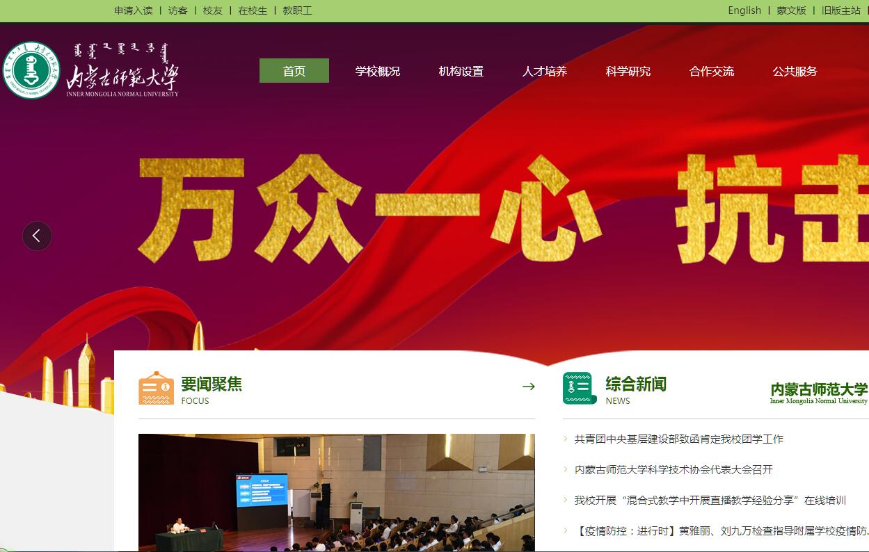 內(nèi)蒙古師范大學(xué)創(chuàng)建于1952年,是新中國成立后黨和國家在邊疆少數(shù)民族地區(qū)最早建立的高等學(xué)校,自治區(qū)重點大學(xué),是具有鮮明教師教育和民族教育特色的綜合性師范大學(xué)。經(jīng)過幾代人的艱苦創(chuàng)業(yè)、實踐探索,現(xiàn)已成為自治區(qū)培養(yǎng)基礎(chǔ)教育、民族教育師資和蒙漢兼通少數(shù)民族復(fù)合型人才的重要基地,是自治區(qū)中學(xué)教師培養(yǎng)中心、中小學(xué)教師繼續(xù)教育中心、基礎(chǔ)教育與民族教育改革發(fā)展研究中心。學(xué)校也是國家及自治區(qū)環(huán)境與可持續(xù)發(fā)展教育培訓(xùn)基地、國家級社會體育指導(dǎo)員培訓(xùn)基地、自治區(qū)民族雕塑研究中心、專業(yè)藝術(shù)創(chuàng)作基地、人文社科普及基地,是自治區(qū)各類體育專業(yè)人才和全國八省區(qū)蒙古族體育人才、中國北方民族音樂人才、自治區(qū)美術(shù)、藝術(shù)設(shè)計教育人才培養(yǎng)基地,被社會譽為“民族教育的搖籃”。學(xué)校有賽罕校區(qū)和盛樂校區(qū),占地總面積3800余畝(約253公頃),校舍建筑面積90余萬平方米,固定資產(chǎn)總值24億余元,其中教學(xué)儀器設(shè)備總值4.6億余元。館藏圖書240余萬冊,電子圖書210余萬冊,配備磁盤存儲100TB。學(xué)校下設(shè)31個教學(xué)機構(gòu),5個合作辦學(xué)學(xué)院,1個獨立學(xué)院,4所附屬學(xué)?!,F(xiàn)有教職工2178人,其中專任教師1360人,具有碩士、博士學(xué)位教師1168人,占專任教師總數(shù)的85.9%,具有副高級以上職稱教師676人,占專任教師總數(shù)的49.7%;有博士生、碩士生導(dǎo)師1002人,有自治區(qū)級教學(xué)名師19人,國家和自治區(qū)有突出貢獻中青年專家25人,入選國家“百千萬人才工程”、國家“萬人計劃”、自治區(qū)“新世紀(jì)321人才工程” 143人(次)、享受國務(wù)院特殊津貼專家27人,獲自治區(qū)“草原英才”項目資助30人。學(xué)校有在校全日制本??粕?1956人,其中蒙古語授課本專科生6536人,有各類研究生4263人,各類成人教育學(xué)生1161人,各類留學(xué)生577人,形成了多層次的人才培養(yǎng)體系。學(xué)校開設(shè)92個本科專業(yè)(其中蒙古語授課專業(yè)30個),涵蓋10大學(xué)科門類。有國家級精品課程1門,國家級精品視頻公開課1門,國家級教學(xué)團隊2個,教育部特色專業(yè)建設(shè)點6個;有自治區(qū)級品牌專業(yè)32個,自治區(qū)重點建設(shè)專業(yè)4個,國家級“專業(yè)綜合改革試點”1個,自治區(qū)級“專業(yè)綜合改革試點”1個,自治區(qū)精品課程79門,自治區(qū)級教學(xué)團隊 16個;有中央與地方高校共建基礎(chǔ)實驗室和特色實驗室12個,自治區(qū)級實驗教學(xué)示范中心9個,自治區(qū)重點學(xué)科和重點培育學(xué)科18個,校級重點學(xué)科37個。學(xué)校擁有博士學(xué)位授予權(quán)一級學(xué)科5個,博士后科研流動站1個,碩士學(xué)位授予權(quán)一級學(xué)科26個,碩士專業(yè)學(xué)位10種;具有碩士研究生免試推薦入學(xué)資格。學(xué)校有科研機構(gòu)92個,自治區(qū)協(xié)同創(chuàng)新中心1個、校級協(xié)同創(chuàng)新中心6個,自治區(qū)級重點實驗室8個、高校重點實驗室2個、高等學(xué)校重點實驗室培育基地1個、高等學(xué)校人文社會科學(xué)重點研究基地4個、哲學(xué)社會科學(xué)研究基地3個、工程技術(shù)研究中心2個、工程實驗室2個、工程研究中心1個、院士專家工作站2個,同時擁有全國“人文社科普及基地”1個、教育部國別和區(qū)域研究中心3個。建校65年來,學(xué)校形成了“求真務(wù)實,育人至上,學(xué)術(shù)創(chuàng)新,服務(wù)社會”的辦學(xué)理念,強化了“雙學(xué)位教師教育和蒙漢兼通人才培養(yǎng)”的辦學(xué)特色,秉承“獻身、求實、團結(jié)、奮進”的校訓(xùn),已培養(yǎng)輸送各類畢業(yè)生24萬余人。學(xué)校堅持開放辦學(xué),與蒙古、俄羅斯、日本、韓國、馬來西亞、美國、英國、德國、法國、荷蘭、加拿大、澳大利亞等20幾個國家及50余個國內(nèi)知名院校和科研機構(gòu)建立了良好的合作關(guān)系;2009年被批準(zhǔn)為漢語國際教育碩士研究生培養(yǎng)單位。學(xué)校先后聘請包括五位兩院院士和四位學(xué)部委員在內(nèi)的四百余位國內(nèi)外著名專家學(xué)者任學(xué)校學(xué)術(shù)顧問、客座教授和兼職教授。在新的歷史發(fā)展階段,學(xué)校正按照“融入社會、服務(wù)社會、引領(lǐng)社會”的理念轉(zhuǎn)型發(fā)展,服務(wù)區(qū)域經(jīng)濟社會發(fā)展和“一帶一路”建設(shè),為把學(xué)校建設(shè)成為特色鮮明的創(chuàng)新型高水平綜合性師范大學(xué)而不懈努力。