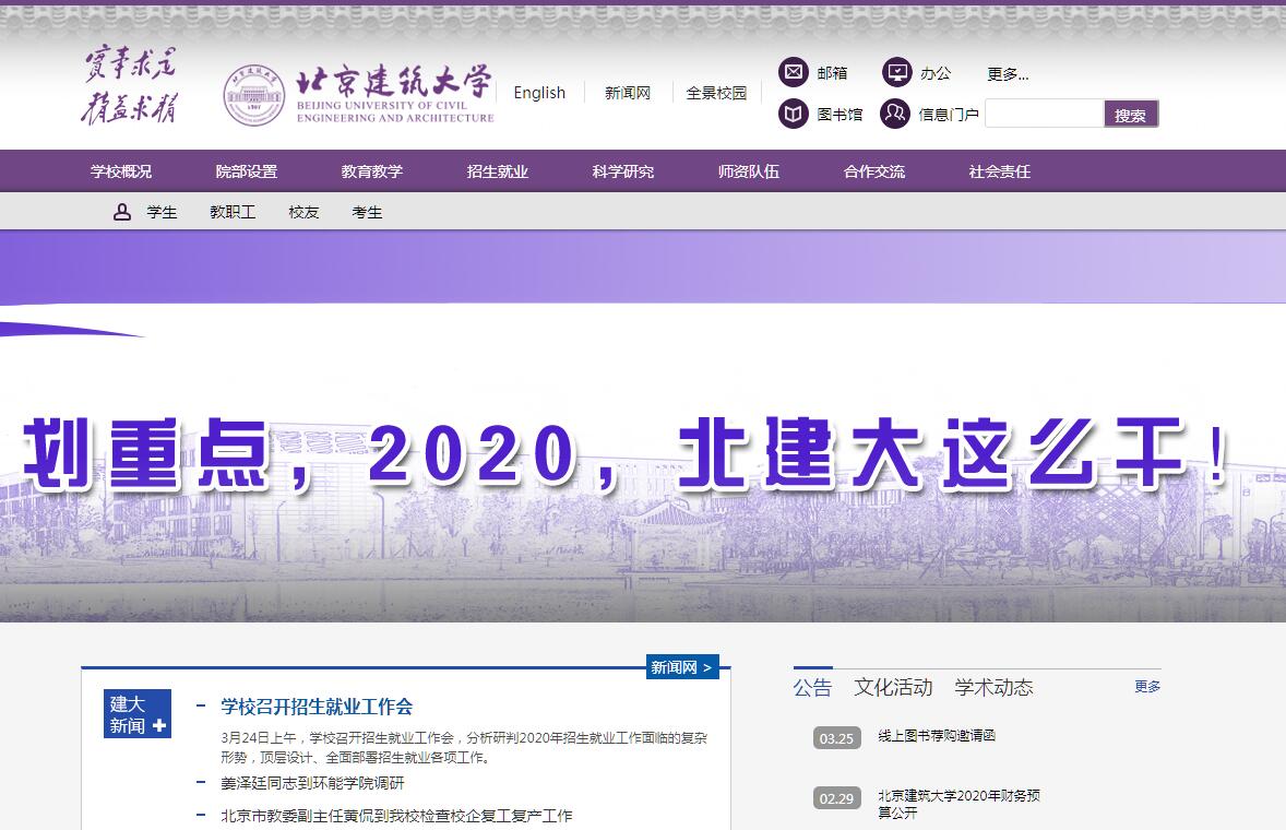 北京建筑大學(xué)是北京市和住房城鄉(xiāng)建設(shè)部共建高校、教育部“卓越工程師教育培養(yǎng)計(jì)劃”試點(diǎn)高校和北京市黨的建設(shè)和思想政治工作先進(jìn)高校,是一所具有鮮明建筑特色、以工為主的多科性大學(xué),是“北京城市規(guī)劃、建設(shè)、管理的人才培養(yǎng)基地和科技服務(wù)基地”、“北京應(yīng)對(duì)氣候變化研究和人才培養(yǎng)基地”和“國(guó)家建筑遺產(chǎn)保護(hù)研究和人才培養(yǎng)基地”,是北京地區(qū)唯一一所建筑類(lèi)高等學(xué)校。學(xué)校源于1907年清政府成立的京師初等工業(yè)學(xué)堂,1933年更名為北平市市立高級(jí)職業(yè)學(xué)校,1936年增設(shè)土木工程科,后歷經(jīng)北京市市立工業(yè)學(xué)校、北京市建筑專(zhuān)科學(xué)校、北京市土木建筑工程學(xué)校、北京建筑工程學(xué)校、北京建筑工程學(xué)院等發(fā)展階段。2013年4月經(jīng)教育部批準(zhǔn)更名為北京建筑大學(xué)。學(xué)校1977年恢復(fù)本科招生,1982年被確定為國(guó)家首批學(xué)士學(xué)位授予高校,1986年獲準(zhǔn)為碩士學(xué)位授予單位。2011年被確定為教育部“卓越工程師教育培養(yǎng)計(jì)劃”試點(diǎn)高校。2012年“建筑遺產(chǎn)保護(hù)理論與技術(shù)”獲批服務(wù)國(guó)家特殊需求博士人才培養(yǎng)項(xiàng)目,成為博士人才培養(yǎng)單位。2014年獲批設(shè)立“建筑學(xué)”博士后科研流動(dòng)站。2015年10月北京市人民政府和住房城鄉(xiāng)建設(shè)部簽署共建協(xié)議,學(xué)校正式進(jìn)入省部共建高校行列。2016年5月,學(xué)?!拔磥?lái)城市設(shè)計(jì)高精尖創(chuàng)新中心”獲批“北京高等學(xué)校高精尖創(chuàng)新中心”。 2017年獲批推薦優(yōu)秀應(yīng)屆本科畢業(yè)生免試攻讀研究生資格。2018年5月,獲批博士學(xué)位授予單位,建筑學(xué)、土木工程獲批一級(jí)學(xué)科博士學(xué)位授權(quán)點(diǎn)。