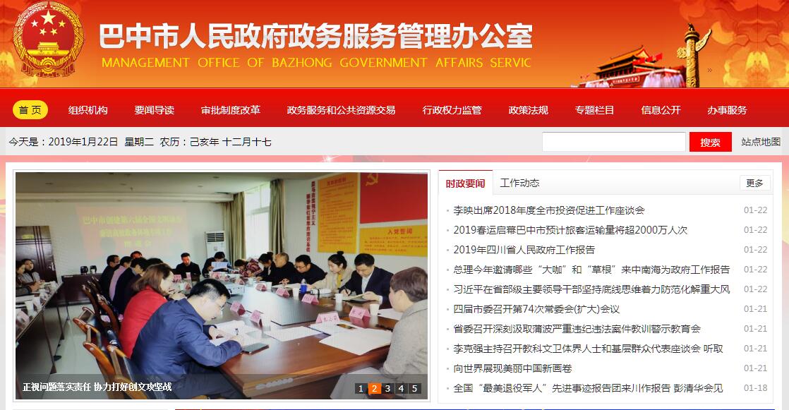 根據(jù)《中共巴中市委辦公室 巴中市人民政府辦公室關(guān)于巴中市人民政府職能轉(zhuǎn)變和機構(gòu)改革的實施意見》(巴委辦發(fā)〔2014〕10號)和《巴中市人政府辦公室關(guān)于印發(fā)巴中市人民政府政務(wù)服務(wù)管理辦公室主要職責內(nèi)設(shè)機構(gòu)和人員編制規(guī)定的通知》(巴府辦發(fā)〔2015〕16號)精神,2014年9月,巴中市人民政府政務(wù)服務(wù)中心更名為巴中市人民政府政務(wù)服務(wù)管理辦公室(簡稱:市政務(wù)服務(wù)管理辦),系市政府直屬正縣級行政機構(gòu)。主要負責指導(dǎo)、協(xié)調(diào)、監(jiān)督并推進全市政務(wù)服務(wù)、便民服務(wù)、公共資源交易管理服務(wù)、行政權(quán)力依法規(guī)范公開運行監(jiān)督管理工作;承擔市政府行政審批制度改革領(lǐng)導(dǎo)小組辦公室、公共資源交易管理委員會辦公室和簡政放權(quán)、放管結(jié)合、優(yōu)化服務(wù)推進政府職能轉(zhuǎn)變協(xié)調(diào)小組辦公室工作;承接全市行政效能電子監(jiān)察和“96960”效能投訴工作。內(nèi)設(shè)綜合科、行政審批制度改革科、政務(wù)服務(wù)和公共資源交易管理科、行政權(quán)力網(wǎng)上運行監(jiān)管科和巴中市行政審批電子服務(wù)中心。
