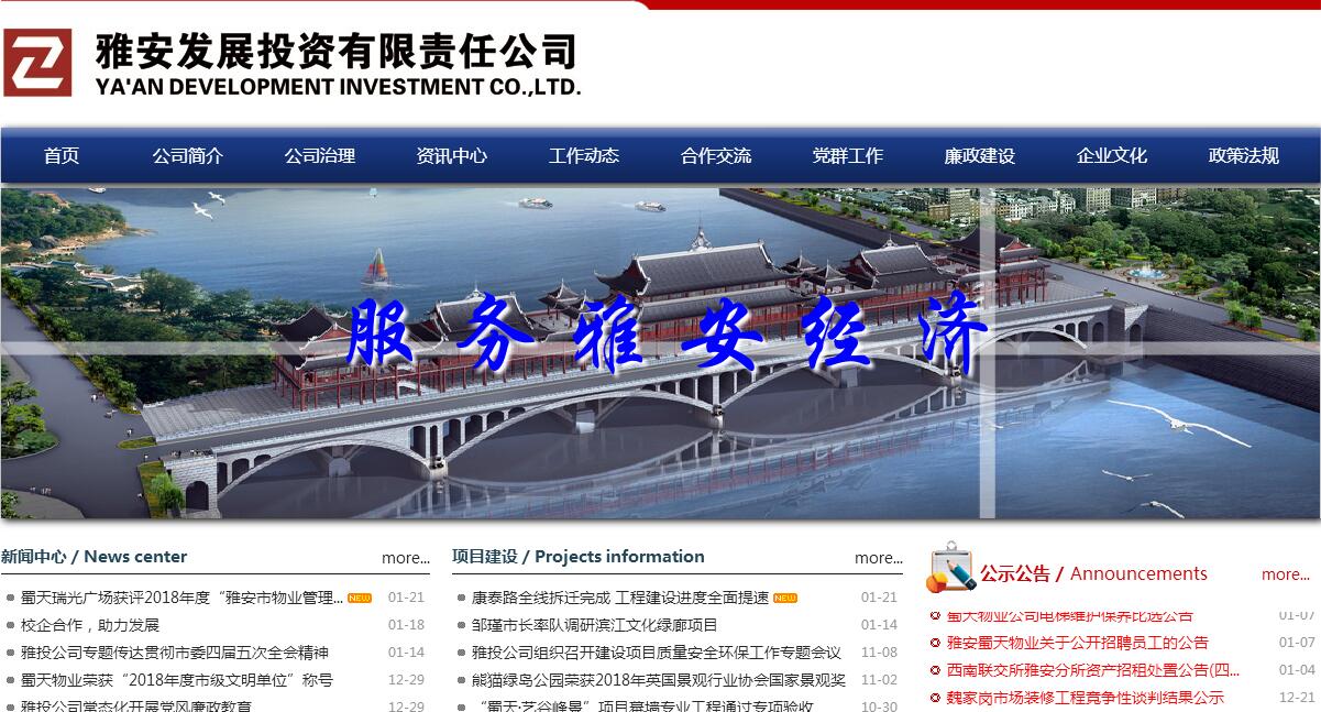 雅安發(fā)展投資有限責(zé)任公司(簡稱“雅安發(fā)展”)2008年12月28日正式掛牌成立,為雅安市屬國有獨資公司。公司注冊地址:雅安市雨城區(qū)沙灣路149號,注冊資本金:人民幣10億元,經(jīng)營范圍:市政府授權(quán)對能源、交通、土地、礦產(chǎn)、城市資源等領(lǐng)域進行投融資和經(jīng)營管理。目前,公司合并報表總資產(chǎn)263.54億元,凈資產(chǎn)166.91億元,公司主體及債項信用AA級。公司內(nèi)設(shè)董事會辦公室、黨委辦公室(黨群工作部)、辦公室、信息中心、財務(wù)部、人力資源部、審計法律事務(wù)部、投資部、融資部、項目管理部、安全環(huán)保管理部、合同造價部、資產(chǎn)管理部、資產(chǎn)運營分公司、資金運營中心、風(fēng)險控制部等16個職能部門。公司主要職能職責(zé):項目融資、項目建設(shè)管理、投資(實體經(jīng)濟、股權(quán)、資本運營)、資產(chǎn)經(jīng)營管理。公司全資設(shè)立雅安市國有資產(chǎn)經(jīng)營有限責(zé)任公司、雅安蜀天房地產(chǎn)開發(fā)有限公司、雅安蜀天商貿(mào)有限責(zé)任公司、雅安蜀天建設(shè)有限公司、雅安蜀天物業(yè)管理有限公司、雅安蜀天物流有限責(zé)任公司、蜀天·麗雅查爾頓酒店等7個子(分)公司。公司控(參)股投資蒙頂山茶交所、雅安商業(yè)銀行、雅電集團公司、雅安農(nóng)商銀行、深圳前海酒交中心、深圳前海跨境電商、蜀天旅游發(fā)展、蒙頂山茶業(yè)公司、華能電力公司、勝利電力公司、雨潤電力公司、利源電力公司、新世紀(jì)廣電網(wǎng)絡(luò)公司等17個公司。與公司緊密合作經(jīng)營單位1個:西南聯(lián)合產(chǎn)權(quán)交易所雅安分所。目前,公司集團化發(fā)展優(yōu)勢明顯,投資和經(jīng)營業(yè)務(wù)領(lǐng)域?qū)拸V,發(fā)展?jié)摿?、后勁十足。目前,雅投公司集團(含8個全資及控股子公司)共有:博士2人,研究生學(xué)歷51人,本科學(xué)歷225人,??茖W(xué)歷99人,中專及以下學(xué)歷11人;具有高級專業(yè)技術(shù)職稱15人(高級工程師6人,高級會計師2人,高級統(tǒng)計師1人,一級建造師6人),中級專業(yè)技術(shù)職稱76人,初級專業(yè)技術(shù)職稱60人。擁有:一級建造師6人、二級建造師18人、中級會計6人、注冊審計師1人、注冊監(jiān)理工程師2人、注冊安全工程師1人、注冊造價工程師1人、注冊資產(chǎn)評估師1人、注冊資產(chǎn)管理師1人、注冊咨詢師1人、企業(yè)法律顧問2人、律師2人。雅安發(fā)展自“十一五”時期成立,經(jīng)過“十二五”時期發(fā)展,公司資產(chǎn)規(guī)模快速增大,投融資和工程建設(shè)管理均取得矚目的成績,已累計完成各類融資近110億元,已建成并交付使用項目60個,旅游地產(chǎn)開發(fā)、茶交所經(jīng)營等實體經(jīng)濟和資本運營發(fā)展取得創(chuàng)新突破。目前,公司正沿著公司制定的三個三年發(fā)展戰(zhàn)略規(guī)劃,推進各項改革,加快轉(zhuǎn)型發(fā)展。