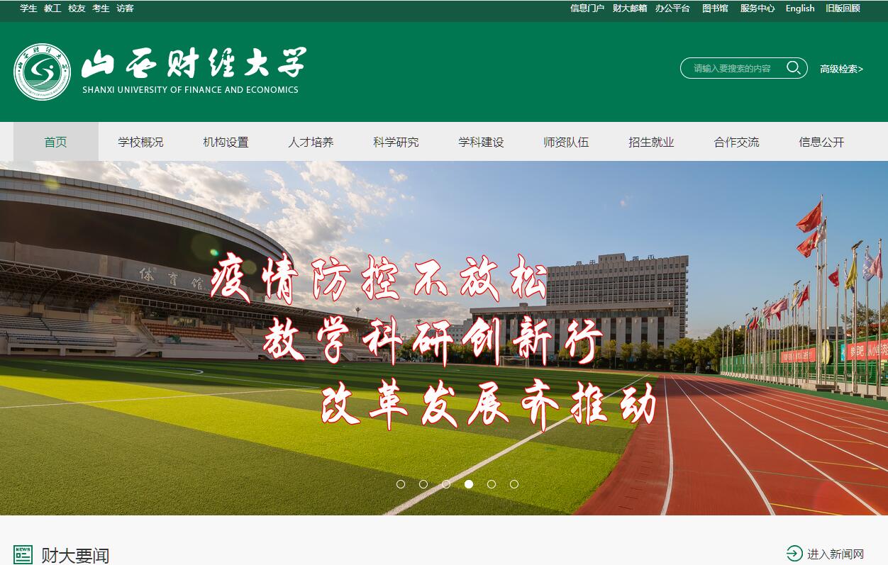 山西財經大學是一所歷史悠久、特色鮮明的高等學府,坐落于國家歷史文化名城、山西省省會太原市。學校始建于1951年,前身是山西省銀行干部學校、商業(yè)干部學校、供銷合作干部學校、財政干部學校和糧食干部學校,1958年9月五所干部學校合并成立山西財經學院。1984年12月成立山西經濟管理學院。1997年10月山西財經學院和山西經濟管理學院合并組建山西財經大學。春風化雨,桃李芬芳,建校67年來,山西財經大學秉承“修德立信、博學求真”的校訓和“明禮誠信、艱苦創(chuàng)業(yè)”的晉商精神,弘文勵教,薪火相傳,為國家和社會培養(yǎng)了19萬余名各類人才,為國家和山西經濟社會發(fā)展做出了重要貢獻。均衡協調發(fā)展,財經特色凸顯。學校是一所突出經濟學、管理學、統計學、法學學科優(yōu)勢和特色,經、管、法、文、理、工、教、藝等學科協調發(fā)展的財經大學?,F設有21個教學單位、10個實體型科研機構和35個非實體型科研機構,擁有3個省級重點學科、7個省級重點建設學科和2個省級重點扶持學科,5個省級人文社科重點研究基地,1個省級協同創(chuàng)新中心。現有1個博士后科研流動站,4個一級學科博士學位授權點,8個一級學科碩士學位授權點,4個二級學科碩士學位授權點,16個專業(yè)碩士學位授權點,58個本科專業(yè),5個國家級特色專業(yè),3個山西省普通高等學校優(yōu)勢專業(yè),7個山西省普通高等學校特色專業(yè),11個山西省普通高等學校本科品牌專業(yè),可在15個本科專業(yè)授予雙學士學位。立足服務社會,科研成果豐碩。學校牢固踐行“崇尚學術,追求卓越”的辦學理念,立足科研資源與智力優(yōu)勢,以高水平科研成果為導向,積極服務區(qū)域經濟社會發(fā)展。學校充分利用中華全國供銷合作總社太原培訓中心的平臺優(yōu)勢,主動承接各項任務,積極參與決策咨詢,為供銷合作事業(yè)的發(fā)展提供智力支持。編輯出版《山西財經大學學報》、《高等財經教育研究》等學術刊物,主辦山西財經大學“山西經濟高峰論壇”、“每周一講”與“振東管理大講堂”等,努力打造服務經濟社會發(fā)展的高水平財經智庫。2017年,學校共獲得各類項目256項,其中國家級項目29項;獲得各類獎項28項,出版各類著作教材43部,在SCI、SSCI、EI來源期刊上發(fā)表論文15篇,在CSSCI、CSCD等刊物上發(fā)表論文207篇,舉辦國際性、全國性學術會議13次,學??蒲袑嵙秃诵母偁幜Ψ€(wěn)步提升。注重內涵建設,素質教育彰顯。學校始終堅持以教學工作為中心,不斷深化教育教學改革,創(chuàng)新“特色與綜合”人才培養(yǎng)模式,教育教學和人才培養(yǎng)質量不斷提高,先后榮獲56項省級教學成果獎,92項山西省高等學校教學改革項目。學校高度重視學生德、智、體、美全面發(fā)展,精心營造“鮮明、厚重、開放、創(chuàng)新”的大學文化氛圍,大力推進素質教育,深化學風建設,科技、文藝、體育等活動豐富多彩。近年來,山西財大學子在全國大學生英語競賽、數學建模競賽、高等院校工程算量大賽、計算機設計大賽、創(chuàng)業(yè)綜合模擬大賽等活動中連續(xù)取得優(yōu)異成績。山西財大畢業(yè)生以基礎扎實、素質全面、富于開拓精神和實踐能力而受到社會各界青睞,2017年,本科生就業(yè)率為90.51%,碩士研究生就業(yè)率為90.94%,博士研究生就業(yè)率為100%,就業(yè)創(chuàng)業(yè)教育取得良好成效。堅持開放發(fā)展,拓展交流空間。學校充分利用校內外和國內外的教學資源,積極發(fā)展國際及港澳臺交流與合作,開發(fā)國際合作科研平臺,與德國馬格德堡大學、弗萊堡大學、埃森經濟管理應用技術大學、美國西弗吉尼亞州立大學、羅斯福大學、英國阿斯頓大學、阿伯丁大學、哈德斯菲爾德大學、澳大利亞迪肯大學、紐卡斯爾大學、意大利佛羅倫薩大學等30多所大學建立了校際交流與合作關系,政治經濟學、金融學和統計學3個專業(yè)具有接受一般訪問學者資格,國際化辦學質量與水平不斷提升。師資力量雄厚,教育體系完備。學?,F有教職工近1700人,其中專任教師1089人,教授、副教授430人,具有博士學位教師374人。有國務院特殊津貼專家、教育部新世紀優(yōu)秀人才、省級中青年學科學術帶頭人等54人,省級教學名師25人。此外,學校還聘請了120余名國內外知名專家學者擔任客座或兼職教授,200余名校外研究機構的專家學者和著名企業(yè)家擔任碩士研究生校外指導教師。學校具備培養(yǎng)學士、碩士、博士和博士后的完整教育體系。學?,F有本科生17000余人,碩士研究生3400余人,博士研究生130余人,繼續(xù)教育學生9000余人,留學生14人。校園環(huán)境優(yōu)美,基礎設施完善。學校分塢城、迎澤和平陽三校區(qū)辦學,校園占地面積1956畝(含東山校區(qū)),建筑面積近60萬平方米,圖書館館藏圖書近420萬冊。擁有網絡與信息技術中心、實驗教學中心、體育場館中心、國際學術交流中心以及晉商與票號博物館、ERP實驗室、金融實驗室、會計模擬實驗室、模擬法庭等現代化教學、科研和實驗設施,其中,經濟管理實驗教學中心為國家級實驗教學示范中心,為學生學習科研提供了良好的硬件環(huán)境。翰墨飄香,弦歌回蕩!揚帆起航,步履鏗鏘!站在新的歷史起點上,山西財經大學將瞄準建設“有特色、高水平、國內一流財經大學”的戰(zhàn)略目