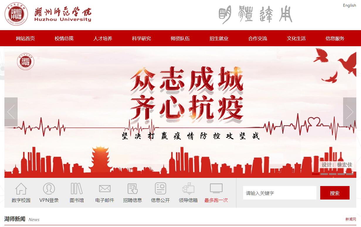 湖州師范學院是一所綜合性的全日制普通高等學校。學校辦學歷史可追溯至1916年的錢塘道第三聯(lián)合縣立師范講習所,1958年開始高等教育,1994年開始招收本科生。1999年經(jīng)國家教育部批準,原湖州師范專科學校、湖州師范學校和湖州教師進修學院合并成立湖州師范學院。2000年,原湖州衛(wèi)生學校并入湖州師范學院。2005年、2017年分別通過教育部本科教學工作水平評估和審核評估。2012年開始獨立招收碩士研究生。學校是碩士學位授予單位、全國“文明單位”、全國學雷鋒活動示范點,是國家第一批“卓越醫(yī)生”和“卓越農(nóng)林人才”教育培養(yǎng)計劃項目試點高校、浙江省加強應用型建設試點本科高校。學校位于歷史悠久、山水清遠、交通便捷的浙江省湖州市。湖州東鄰上海、南靠杭州、北接南京,與蘇州、無錫隔太湖相望。高鐵擴大了湖州“一小時”交通圈(上海、南京、杭州),進一步加快了融入長三角的步伐。文化底蘊深厚,生態(tài)環(huán)境優(yōu)美,區(qū)位優(yōu)勢明顯,素有“絲綢之府、魚米之鄉(xiāng)、文化之邦”的美譽,如今又是“兩山”理念的誕生地、中國美麗鄉(xiāng)村的發(fā)源地、“生態(tài)+”的先行地和“中國制造2025”試點示范城市。學校占地1600余畝,校舍總面積58萬平方米。有教師教育學院、文學院、理學院、生命科學學院、工學院、醫(yī)學院等14個二級學院,舉辦1所獨立學院——求真學院,有6所附屬醫(yī)院、4所附屬學校。全日制在校學生18000余人(其中碩士研究生近200人、求真學院學生近7100人),成教在冊函授學生4700余人。圖書館總建筑面積4.4萬平方米,館藏紙本圖書近186萬冊,國內(nèi)外紙本期刊1400余種。學校涵蓋教育學、工學、農(nóng)學、醫(yī)學、理學、文學、經(jīng)濟學、藝術學、法學、管理學、歷史學等11大學科門類,正按照做優(yōu)師范、做大工學、做強農(nóng)醫(yī)、做精數(shù)理、做特人文、做活經(jīng)管的建設思路,積極扶植和培育服務區(qū)域產(chǎn)業(yè)發(fā)展的學科專業(yè),構建科學合理的學科專業(yè)體系。學校擁有53個本科專業(yè),2個一級學科學術型碩士點和4個專業(yè)學位碩士點;1個國家地方聯(lián)合工程實驗室,1個國際聯(lián)合實驗室,7個省重點(工程)實驗室、2011協(xié)同創(chuàng)新分中心等創(chuàng)新平臺,其中省級重大科技創(chuàng)新服務平臺1個;2個省科研創(chuàng)新團隊(其中1個重點),1個省級院士專家工作站,2個市科研創(chuàng)新團隊;8個省級一流學科,10個湖州市重點學科;2個國家特色專業(yè),1個教育部專業(yè)綜合改革試點項目,10個省級重點專業(yè),5個省級優(yōu)勢專業(yè),11個省級新興(特色)專業(yè);2門國家級精品課程,2門國家級精品資源共享課程,4門省級精品在線開放課程,26門省級精品課程;1個國家級大學生校外實踐教育基地,2個省級大學生校外實踐教育基地;7個省級實驗教學示范中心,1個省級人才培養(yǎng)模式創(chuàng)新實驗區(qū),是浙江省教師教育基地、浙江省農(nóng)村社區(qū)衛(wèi)生人才培養(yǎng)基地。學校生源充足,畢業(yè)生就業(yè)質(zhì)量持續(xù)提高。學校現(xiàn)有教職工2500余人(含求真學院、直屬附屬醫(yī)院),其中,正高職稱201人,副高職稱480人,具有博士學位(含在讀)375人。有共享院士2人,“長江學者”1人,國家“千人計劃”入選者4人,國家“萬人計劃”入選者1人,國家教學名師1人,省“千人計劃”入選者4人,省“萬人計劃”入選者1人,省有突出貢獻中青年專家4人,省高等學?!板X江學者”特聘教授2人,部級崗位科學家2人,省“151”人才工程重點資助人員1人,第一、二層次人選13人,省高校中青年學科帶頭人32人。獲國務院政府特殊津貼9人,全國優(yōu)秀教師4人,全國百名“兩課”優(yōu)秀教師1人,獲全國曾憲梓教育基金獎 9人;省級教學名師4人,省十佳優(yōu)秀科技工作者1人。擁有第35屆南丁格爾獎獲得者1人,另有一名校友獲第42屆南丁格爾獎。學校獲國家高等教育教學成果獎3項,省高等教育教學成果一等獎4項、二等獎13項,省高師院校優(yōu)秀教學成果一等獎 1項;獲省自然科學獎一等獎1項、省科學技術進步獎一等獎2項、省哲學社會科學優(yōu)秀成果一等獎1項,省(部)級科研成果二等獎14項、三等獎19項、進步獎2項。近三年,主持國家自然科學基金項目43項、國家哲學社會科學基金項目12項(其中特別委托項目1項)、省部級項目167項;與省內(nèi)外400余家企事業(yè)單位建立了產(chǎn)學研合作關系。與湖州市政府共建湖州發(fā)展研究院、農(nóng)村發(fā)展研究院、馬克思主義講習所等,擁有5個湖州市哲學社會科學研究基地,建有中國生態(tài)文明研究院、“兩山”理念研究中心等區(qū)域特色鮮明的研究機構。學校積極響應國家“一帶一路”倡議,在阿塞拜疆國立語言大學設立孔子學院,與中國社會科學院等共建國際跨文化研究中心。積極開展國際合作與交流,先后與20多個國家和港澳臺地區(qū)的50多所院校和機構開展交流合作,實施中青年教師海外培養(yǎng)計劃和國(境)外校際學生交流項目近30個,每年出國(境)學生數(shù)達200人以上。目前,學校擁有來自美國、俄羅斯、烏克蘭、孟加拉國等40多個國家的570多名長期外國留學生。學校設立“陸增鏞教師獎”“陸增祺卓越教學獎”“陸增鏞勵志獎學金”“眾