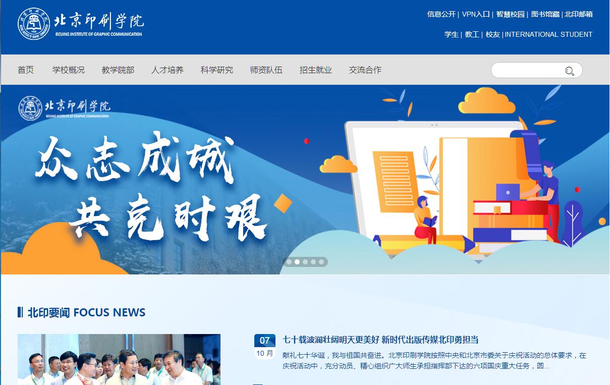 北京印刷學(xué)院隸屬于北京市,是由國家新聞出版署和北京市人民政府共建的全日制普通高等院校。學(xué)校的前身是1958年文化部建立的文化學(xué)院印刷工藝系。1961年文化學(xué)院撤銷,印刷工藝系并入中央工藝美術(shù)學(xué)院(現(xiàn)清華大學(xué)美術(shù)學(xué)院)。1978年,經(jīng)國務(wù)院批準(zhǔn),在印刷工藝系基礎(chǔ)上組建成立北京印刷學(xué)院。經(jīng)過近60年的發(fā)展建設(shè),學(xué)校已經(jīng)成為學(xué)科特色鮮明、師資力量雄厚、科學(xué)研究創(chuàng)新、辦學(xué)格局開闊的傳媒類大學(xué)。學(xué)校堅持特色發(fā)展,以特色學(xué)科建設(shè)提升核心競爭力。學(xué)校初步形成了傳媒科技、傳媒文化、傳媒藝術(shù)、傳媒管理四大特色學(xué)科專業(yè)群,建設(shè)了具有時代特征的數(shù)字印刷、數(shù)字出版、數(shù)字媒體藝術(shù)、數(shù)字媒體技術(shù)構(gòu)成的新型數(shù)字媒體專業(yè)群,擁有4個北京市重點(diǎn)建設(shè)學(xué)科,10個一級學(xué)科碩士學(xué)位授權(quán)點(diǎn),5個專業(yè)碩士授權(quán)點(diǎn),19個二級學(xué)科碩士學(xué)位授權(quán)點(diǎn),30個本科專業(yè)。學(xué)校與中國傳媒大學(xué)、北京交通大學(xué)、中科院化學(xué)所、華南理工大學(xué)、天津科技大學(xué)等高校和科研機(jī)構(gòu)聯(lián)合培養(yǎng)博士研究生。學(xué)校有2個國家級特色專業(yè)建設(shè)點(diǎn),1個國家級優(yōu)秀教學(xué)團(tuán)隊,1項國家級教學(xué)成果獎,1個國家級實驗教學(xué)示范中心,1個國家級大學(xué)生校外實踐教育基地,2個國家級卓越工程師教育培養(yǎng)計劃專業(yè),1部國家級精品教材,6部國家級“十二五”規(guī)劃教材,1個北京市一流專業(yè),4個北京市特色專業(yè)建設(shè)點(diǎn),3個北京市實驗教學(xué)示范中心,3個北京市校外人才培養(yǎng)基地,2個北京市示范性校內(nèi)創(chuàng)新實踐基地。學(xué)校是教育部印刷包裝教學(xué)指導(dǎo)委員會副主任委員單位、高等學(xué)校出版專業(yè)教學(xué)指導(dǎo)委員會常務(wù)副主任委員單位和秘書處掛靠單位、全國出版專業(yè)學(xué)位研究生教育指導(dǎo)委員會委員單位、國家新聞出版署和北京市出版印刷高級人才培養(yǎng)基地、北京出版產(chǎn)業(yè)與文化研究基地、北京文化安全研究基地、國家新媒體產(chǎn)業(yè)基地“動漫創(chuàng)作及人才培訓(xùn)中心”。學(xué)校堅持以人為本,實施人才強(qiáng)校戰(zhàn)略。2017年底,學(xué)校教職工共801人,其中專任教師538人,碩博比例達(dá)到89.78%,高級職稱教師比例達(dá)到50.93%。學(xué)校形成了以新聞出版行業(yè)領(lǐng)軍人才、中國出版政府獎、畢昇印刷杰出成就獎獲得者為核心的行業(yè)領(lǐng)軍人才團(tuán)隊,以全國優(yōu)秀教師、北京市人才強(qiáng)教計劃高層次人才為核心的教學(xué)科研團(tuán)隊。已建成了學(xué)歷、年齡、職稱結(jié)構(gòu)不斷優(yōu)化的人才隊伍。2013年獲批博士后科研工作站,截至2017年11月,共計招收44位博士后,其中,7位獲得國家自然科學(xué)基金和國家社會科學(xué)基金資助,6位獲得北京市自然科學(xué)基金和社會科學(xué)基金資助;1位獲得中國博士后科學(xué)基金特別資助,7位獲得中國博士后科學(xué)基金面上資助(其中一等資助2人;二等資助5人),24位獲得北京市博士后科研活動項目資助,4位獲得北京市教委面上資助科研項目。在市屬設(shè)站單位中,我校在站博士后獲得北京市博士后科研活動項目資助總?cè)藬?shù)排名第三,資助人數(shù)占在站博士后人數(shù)比例名列第一。辦學(xué)近60年,學(xué)校已經(jīng)為社會培養(yǎng)輸送了5萬余名畢業(yè)生,得到社會的廣泛認(rèn)可。學(xué)校大力推進(jìn)科研工作,實施科技創(chuàng)新驅(qū)動工程。近五年學(xué)??蒲薪?jīng)費(fèi)穩(wěn)定在6000萬左右。5年來,學(xué)校獲得國家級項目46項,其中國家自然科學(xué)基金項目26項、國家社會科學(xué)基金項目16項,科技部軟科學(xué)項目2項,科技支撐項目1項,國家重點(diǎn)研發(fā)計劃1項;省部級項目123項,其中北京市科委項目19項、北京市自然基金項目9項,北京市社科基金項目39項,教育部人文社科項目7項,北京市教委重點(diǎn)項目8項,國家新聞出版署項目15項,其他項目26項;市級項目284項,各類橫向科研項目408項。學(xué)校強(qiáng)化產(chǎn)學(xué)研結(jié)合,建立了覆蓋新聞出版產(chǎn)業(yè)鏈的科研平臺。2010年經(jīng)北京市批準(zhǔn),學(xué)校成立了北京綠色印刷包裝產(chǎn)業(yè)技術(shù)研究院、北京印刷學(xué)院大學(xué)科技園。2013年,學(xué)校成立了文化產(chǎn)業(yè)安全研究院、青島研究院。2014年,學(xué)校獲批國家綠色印刷包裝產(chǎn)業(yè)協(xié)同創(chuàng)新基地,成立北京印刷學(xué)院數(shù)字出版與傳媒研究院。2015年,中國版權(quán)協(xié)會版權(quán)研究中心、國家復(fù)合數(shù)字出版工程和版權(quán)保護(hù)工程落戶北印。2016年10月,北京印刷學(xué)院與北京石油化工學(xué)院、北京建筑大學(xué)發(fā)起成立“京南大學(xué)聯(lián)盟”。學(xué)校與屬地政府、20余家科研機(jī)構(gòu)和企業(yè)、兄弟院校分別簽署了戰(zhàn)略合作協(xié)議,發(fā)起成立北京綠色印刷產(