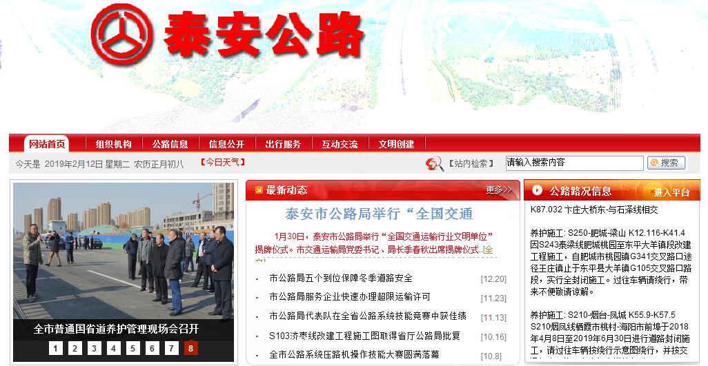 泰安市公路局為具有行政職能的正縣級事業(yè)單位,主要負責全市普通國省干線公路的規(guī)劃、設計、建設、養(yǎng)護、路政管理(含部分高速公路的路政管理)、通行費征收等工作。市局機關內(nèi)設職能科室14個、黨群機構4個,下轄10個局直單位和5個縣市區(qū)公路局。截至2014年底,全市公路通車里程達14446.9公里,公路密度達到每百平方公里186.1公里;其中國省干線公路通車里程達1189.4公里,我局負責管養(yǎng)3條國道、12條省道,管養(yǎng)里程822公里。泰城到各縣市基本實現(xiàn)了高等級公路連接,形成了“1小時生活圈”。一個以泰城為中心,環(huán)城高速公路為樞紐,7條國道、15條省道為骨架,縣鄉(xiāng)公路和農(nóng)村公路為依托,四通八達、干支相連的現(xiàn)代化公路網(wǎng)已經(jīng)基本形成。近年來,市公路局堅持以科學發(fā)展觀為指導,大力推進暢通公路、智能公路、綠色公路、平安公路、文化公路建設,強化管理,開拓進取,努力打造“和諧通道行穩(wěn)致遠”公路文化品牌,積極營造“暢安舒美”的公路通行環(huán)境,各項工作取得了顯著成績,為“推進富民強市,建設幸福泰安”做出了積極貢獻。