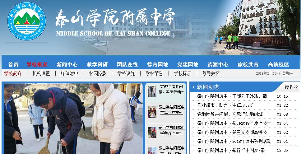 泰山學(xué)院附屬中學(xué)創(chuàng)建于1994年,占地面積46畝,是一所省級規(guī)范化學(xué)校。學(xué)?,F(xiàn)有教師202人,其中全國優(yōu)秀教師1人,全國模范教師1人,省級優(yōu)秀教師5人,省十大創(chuàng)新教師1人,市專業(yè)技術(shù)拔尖人才3人,特級教師1人,市優(yōu)秀教師15人,市優(yōu)秀班主任4人,泰山名師6人,泰山功勛教師4人。學(xué)校堅(jiān)持“讓每一位學(xué)生有一個(gè)可持續(xù)的未來”的辦學(xué)理念,秉持“喚醒學(xué)生心智、養(yǎng)成學(xué)生習(xí)慣、激勵(lì)學(xué)生成功、健全學(xué)生人格”的教育實(shí)踐觀,全面實(shí)施素質(zhì)教育。開設(shè)了“五大行動(dòng)”實(shí)踐課程;成立了“科技社”、“愛心公益社”、“望岳文學(xué)社”等十幾個(gè)社團(tuán);每年開辦五大節(jié)日,為學(xué)生的個(gè)性化發(fā)展搭建平臺。創(chuàng)新德育體系,設(shè)計(jì)實(shí)施了“學(xué)生成長導(dǎo)師制”、“榮譽(yù)申請制”、“學(xué)生成長積點(diǎn)卡”、“學(xué)生快樂成長攀登卡”等制度,其中“學(xué)生快樂成長攀登卡”制度,榮獲山東省首屆教育成果評比二等獎(jiǎng),在山東省德育暨心理健康教育工作會(huì)議上推廣,受到省教育廳領(lǐng)導(dǎo)和與會(huì)人員的高度評價(jià)。學(xué)校數(shù)字化校園建設(shè)成效顯著,信息技術(shù)與教育教學(xué)的融合逐步實(shí)現(xiàn),學(xué)校數(shù)字化校園建設(shè)經(jīng)驗(yàn)?zāi)陜?nèi)兩次在全市信息化建設(shè)推進(jìn)會(huì)上作典型發(fā)言,并成為2015山東省素質(zhì)教育論壇的焦點(diǎn)。課程改革深入推進(jìn),打造并實(shí)施了“3+X”的特色課程,實(shí)現(xiàn)選課走班,給每個(gè)學(xué)生提供一個(gè)能夠?qū)崿F(xiàn)自我發(fā)展,全面發(fā)展,體驗(yàn)成長幸福的平臺。近年來,先后兩次評獲全國和諧校園先進(jìn)學(xué)校,被授予全國消防安全教育示范學(xué)校、省公民道德建設(shè)示范單位、省依法治校先進(jìn)單位、山東省中小學(xué)德育工作先進(jìn)單位、山東省德育暨心理健康教育示范學(xué)校、泰山先鋒等榮譽(yù)稱號。連續(xù)3年被評為市直事業(yè)單位績效考核A等,連續(xù)五年奪得泰安市市直學(xué)校綜合評估第一名。
