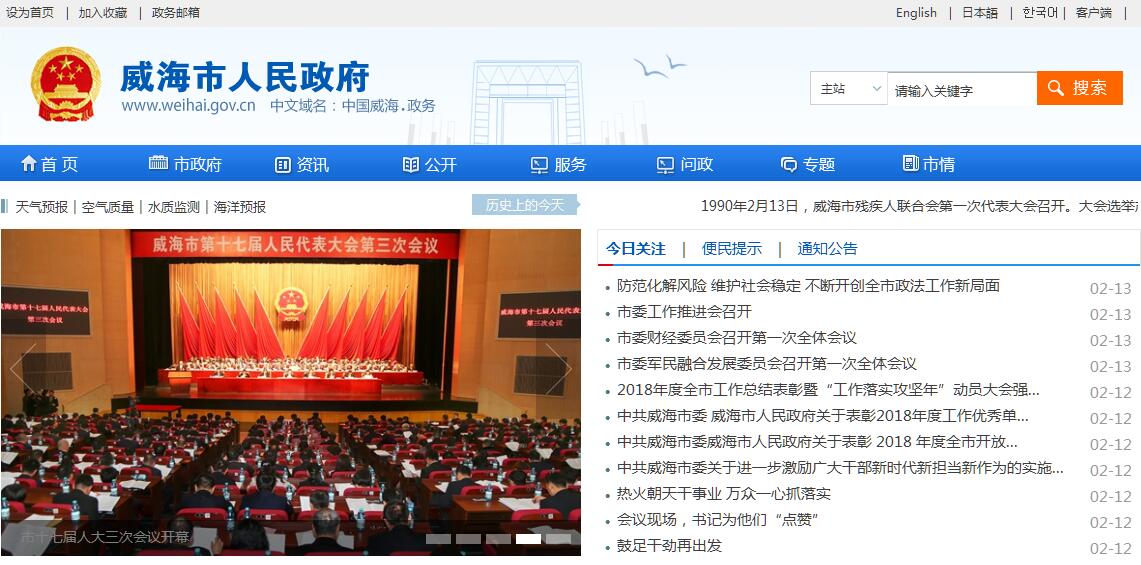 威海是山東省地級(jí)市,位于山東半島東端,北、東、南三面瀕臨黃海,北與遼東半島相對(duì),東與朝鮮半島隔海相望,西與山東煙臺(tái)接壤。東西最大橫距135公里,南北最大縱距81公里,海岸線長(zhǎng)985.9公里。面積5797.74平方公里,其中市區(qū)面積2606.65平方公里,轄環(huán)翠區(qū)、文登區(qū)、榮成市、乳山市。威海取威震海疆之意,別名威海衛(wèi)。威海是中國(guó)大陸距離日本、韓國(guó)最近的城市、中國(guó)近代第一支海軍北洋海軍的發(fā)源地、甲午海戰(zhàn)的發(fā)生地,甲午戰(zhàn)爭(zhēng)后被列強(qiáng)侵占并回歸祖國(guó)的“七子”之一。2017年全年地區(qū)生產(chǎn)總值3480.10億元,按可比價(jià)格計(jì)算,比上年增長(zhǎng)8.1%,其中,第一產(chǎn)業(yè)增加值235.48億元,增長(zhǎng)2.5%;第二產(chǎn)業(yè)增加值1580.49億元,增長(zhǎng)7.5%;第三產(chǎn)業(yè)增加值1664.13億元,增長(zhǎng)9.6%。三次產(chǎn)業(yè)結(jié)構(gòu)調(diào)整為6.8:45.4:47.8。2017年中國(guó)地級(jí)市全面小康指數(shù)排名第24。1984年威海成為第一批中國(guó)沿海開放城市。1990年被評(píng)為中國(guó)第一個(gè)國(guó)家衛(wèi)生城市。1996年被建設(shè)部命名為國(guó)家園林城市。2009年5月7日被評(píng)選為國(guó)家森林城市。2015年成為中韓自貿(mào)區(qū)先行示范城市。2016年被國(guó)務(wù)院列為第一批國(guó)家新型城鎮(zhèn)化綜合試點(diǎn)地區(qū)。2017年入選為第五屆全國(guó)文明城市。2018年1月入選首批社會(huì)信用體系建設(shè)示范城市。2017年中國(guó)地級(jí)市全面小康指數(shù)排名第24。2018年10月,威海獲評(píng)健康中國(guó)年度標(biāo)志城市。2018年12月,2018中國(guó)大陸最佳地級(jí)城市30強(qiáng)。