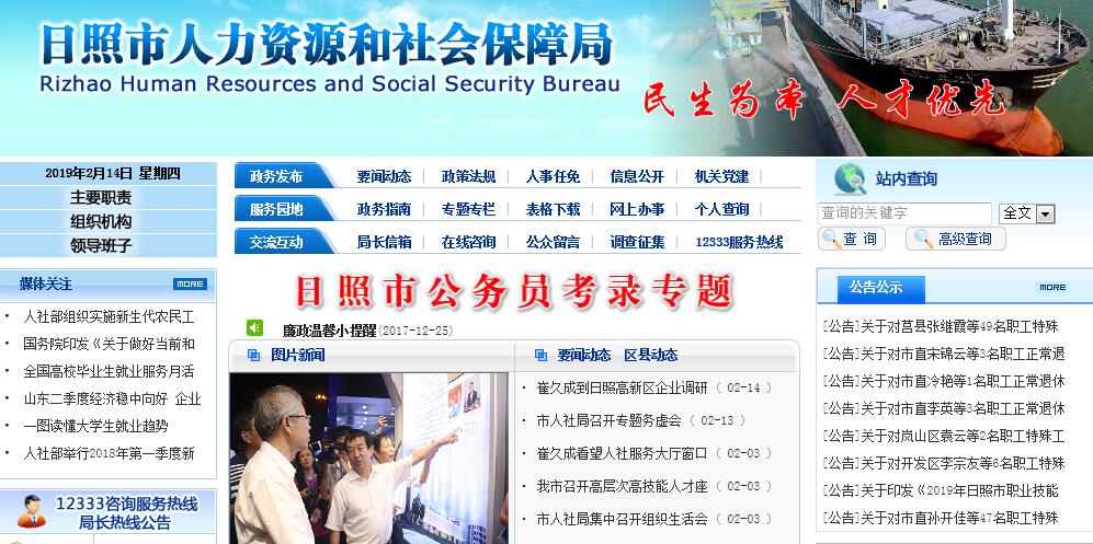 日照市人力資源和社會保障局主要職責:(一)貫徹執(zhí)行人力資源社會保障法律、法規(guī)和方針、政策,擬訂全市人力資源和社會保障事業(yè)發(fā)展規(guī)劃和政策,并組織實施和監(jiān)督檢查。(二)擬訂人力資源市場發(fā)展規(guī)劃和人力資源流動政策,建立統(tǒng)一規(guī)范的人力資源市場,促進人力資源合理流動和有效配置;擬訂人力資源服務業(yè)發(fā)展規(guī)劃和政策。(三)負責促進就業(yè)創(chuàng)業(yè)工作。擬訂統(tǒng)籌城鄉(xiāng)就業(yè)創(chuàng)業(yè)發(fā)展規(guī)劃和政策,建立完善城鄉(xiāng)勞動者平等就業(yè)制度、就業(yè)援助制度和職業(yè)培訓制度,健全公共就業(yè)創(chuàng)業(yè)服務體系;牽頭擬訂高校畢業(yè)生就業(yè)創(chuàng)業(yè)政策;組織落實推動家庭服務業(yè)發(fā)展促進就業(yè)規(guī)劃、政策及標準;負責就業(yè)、失業(yè)預測預警和信息引導,擬訂應對預案,實施預防、調節(jié)和控制,保持就業(yè)形勢穩(wěn)定。(四)統(tǒng)籌建立覆蓋城鄉(xiāng)的社會保障體系。擬訂城鄉(xiāng)社會保險及其補充保險政策、標準并組織實施;會同有關部門擬訂社會保險及其補充保險基金管理和監(jiān)督制度;編報全市社會保險基金預決算建議草案;負責社會保險基金預測預警和信息引導,擬訂應對預案,實施預防、調節(jié)和控制,保持社會保險基金安全完整。(五)負責政府人才綜合管理工作。擬訂人才開發(fā)地方性政策,會同有關部門負責深化人才發(fā)展體制機制改革工作;牽頭推進招才引智工作;組織擬訂全市專業(yè)技術人才、高技能人才規(guī)劃、政策,組織擬訂留學回國人員來我市創(chuàng)新創(chuàng)業(yè)政策,并組織實施;健全落實博士后管理制度;協(xié)調推進全市人才服務體系建設;負責非教育系統(tǒng)公派留學工作;擬訂專業(yè)技術人員管理和繼續(xù)教育政策并組織實施,牽頭推進深化職稱制度改革工作,負責專業(yè)技術人員的資格評價和資格考試工作;擬訂全市技工院校及職業(yè)培訓機構發(fā)展規(guī)劃、政策并組織實施;負責高層次專業(yè)技術人才、高技能人才選拔、培養(yǎng)、管理服務工作。(六)貫徹執(zhí)行機關、事業(yè)單位人員工資收入分配政策,建立健全機關事業(yè)單位人員工資正常增長和支付保障機制;擬訂機關事業(yè)單位人員福利政策并組織實施,貫徹執(zhí)行機關企事業(yè)單位人員離退休政策;貫徹落實企業(yè)職工工資收入分配的宏觀調控政策;指導和監(jiān)督國有企業(yè)工資總額管理;對國有企業(yè)負責人薪酬管理政策執(zhí)行情況進行監(jiān)督檢查。(七)負責全市事業(yè)單位人事綜合管理,指導事業(yè)單位人事制度改革,擬訂事業(yè)單位人員和機關工勤人員管理政策并組織實施。(八)綜合管理全市引進國外智力、赴國(境)外培訓和留學人員來我市工作。擬訂全市引進國外智力規(guī)劃和政策,編報引進國外智力專項經(jīng)費預算并監(jiān)督實施;負責全市出國(境)培訓項目及人員的審核、備案和來我市工作外國專家的管理工作;組織實施重點出國(境)培訓項目和聘請外國專家年度計劃;擬訂吸引國(境)外專家、留學人員來我市工作或定居政策;管理非教育系統(tǒng)公派留學工作;指導全市人力資源和社會保障方面的對外交流工作;承擔中國藍色經(jīng)濟引智試驗區(qū)管理委員會的日常工作。(九)貫徹落實國家、省軍隊轉業(yè)干部安置政策,組織擬訂全市軍隊轉業(yè)干部安置政策和安置計劃;會同有關部門下達城鎮(zhèn)退役士兵安置計劃;負責軍隊轉業(yè)干部教育培訓工作;指導自主擇業(yè)軍隊轉業(yè)干部管理服務工作。(十)負責行政機關公務員和參照公務員法管理的事業(yè)單位工作人員的綜合管理,組織實施公務員法;會同組織部門擬訂有關人員調配政策和援建地區(qū)、重點建設項目等特殊人員安置政策;會同有關部門組織實施國家榮譽制度和政府獎勵制度;依法辦理市政府提請市人大常委會決定任免工作人員的手續(xù)和市政府任免工作人員的有關事項。(十一)組織擬訂農(nóng)民工工作規(guī)劃和政策并組織實施;協(xié)調解決重點難點問題,維護農(nóng)民工合法權益。(十二)擬訂勞動關系政策,完善勞動關系協(xié)調機制,組織開展和諧勞動關系創(chuàng)建活動;貫徹落實禁止非法使用童工政策和女工、未成年工的特殊勞動保護政策;擬訂勞動人事爭議調解仲裁政策,指導監(jiān)督勞動人事爭議調解仲裁工作;組織實施勞動監(jiān)察,協(xié)調勞動者維權工作,依法查處違法案件。(十三)承辦市委、市政府交辦的其他事項。