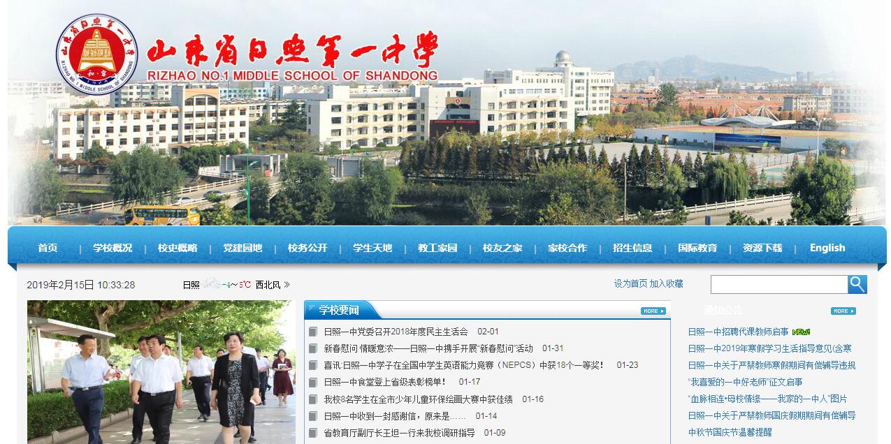 日照一中創(chuàng)建于1924年,是首批山東省屬重點(diǎn)中學(xué)、省級規(guī)范化學(xué)校、省級教學(xué)示范學(xué)校、中國百強(qiáng)中學(xué)和全國先進(jìn)單位。學(xué)校東、西校區(qū)占地397畝,建筑面積15萬平方米,現(xiàn)有教職工510余人,在校學(xué)生6000余人。2014年與莒縣人民政府合作辦學(xué),創(chuàng)建了日照一中莒縣校區(qū),為更多學(xué)子搭建了成長、成才的舞臺。學(xué)校辦學(xué)條件先進(jìn),師資力量雄厚,目前在崗教師中有1人被評為全國模范教師、全國教育系統(tǒng)勞動模范,8人被評為齊魯名師、省特級教師,11人被評為省教學(xué)能手、省優(yōu)秀教師,11人被評為日照名師,170余人被評為市學(xué)科帶頭人、市教學(xué)能手和市教學(xué)新秀,59人獲全國優(yōu)質(zhì)課一等獎和省優(yōu)質(zhì)課一等獎。建校90多年來,學(xué)校培養(yǎng)了6萬余名優(yōu)秀人才,其中恢復(fù)高考以來,向高校輸送本科人才4萬余人,有知名博士校友600余人,將軍校友14位,有132人從這里走進(jìn)北大、清華。日照一中素質(zhì)教育扎實(shí)有效,學(xué)生綜合素質(zhì)全面,受到名牌高校的青睞,在高校自主招生測試中創(chuàng)造了全國領(lǐng)先的成績,學(xué)校入圍《全國自主招生500強(qiáng)中學(xué)排行榜》,名列全國第九名。近年來,在學(xué)科奧賽、科技創(chuàng)新大賽、作文大賽、英語大賽、地理科技大賽、學(xué)生社團(tuán)大賽、辯論賽、籃球大賽、健美操大賽、田徑大賽等許多方面都取得了全國、全省領(lǐng)先的成績。學(xué)校獲得全國先進(jìn)單位、中國百強(qiáng)中學(xué)、全國百所高中特色項(xiàng)目學(xué)校、全國奧林匹克競賽金牌學(xué)校、全國教育科研先進(jìn)集體、國家級體育傳統(tǒng)項(xiàng)目學(xué)校、國家級平安和諧校園、聯(lián)合國“環(huán)境、人口與可持續(xù)發(fā)展”EPD項(xiàng)目實(shí)驗(yàn)學(xué)校、教育部國防教育特色學(xué)校、省級文明單位等100多項(xiàng)省級以上榮譽(yù)、300多項(xiàng)市級以上榮譽(yù)。當(dāng)前,全校師生正秉承“勤樸勇誠”的校訓(xùn),弘揚(yáng)“不畏艱難、艱苦創(chuàng)業(yè),胸懷祖國、大氣有為,精益求精、無私奉獻(xiàn),敢為人先、永爭一流”的優(yōu)良傳統(tǒng),堅(jiān)持“人文日新,和諧發(fā)展”的辦學(xué)思想和“以學(xué)生健康成長為本,為學(xué)生終生發(fā)展奠基”的教育理念,不忘初心,與時(shí)俱進(jìn),開拓創(chuàng)新,向著“省內(nèi)領(lǐng)先、國內(nèi)一流、國際知名”的辦學(xué)目標(biāo)闊步邁進(jìn)。